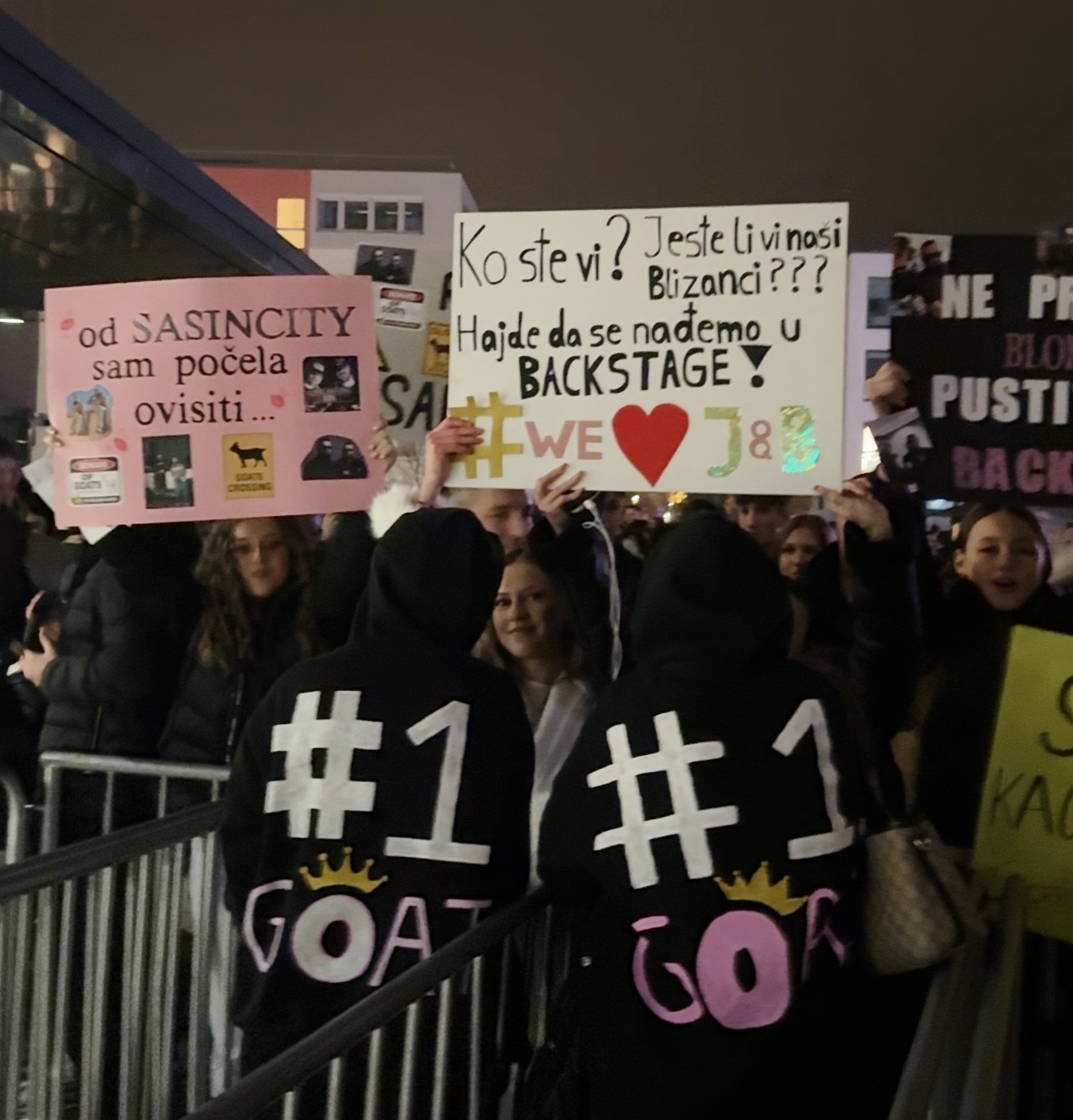 Na jednom od transparenata pisalo je: “Moja mama kaže da nemam šansu za backstage – dokažite da jednom nije upravu!”, jedan: ,,Jala i Buba su jedini muškarci koji me nisu razočarali!”. Atmosfera je bila toliko zarazna da su prolaznici spontano počeli da pevaju refrene i fotografišu svaki detalj.